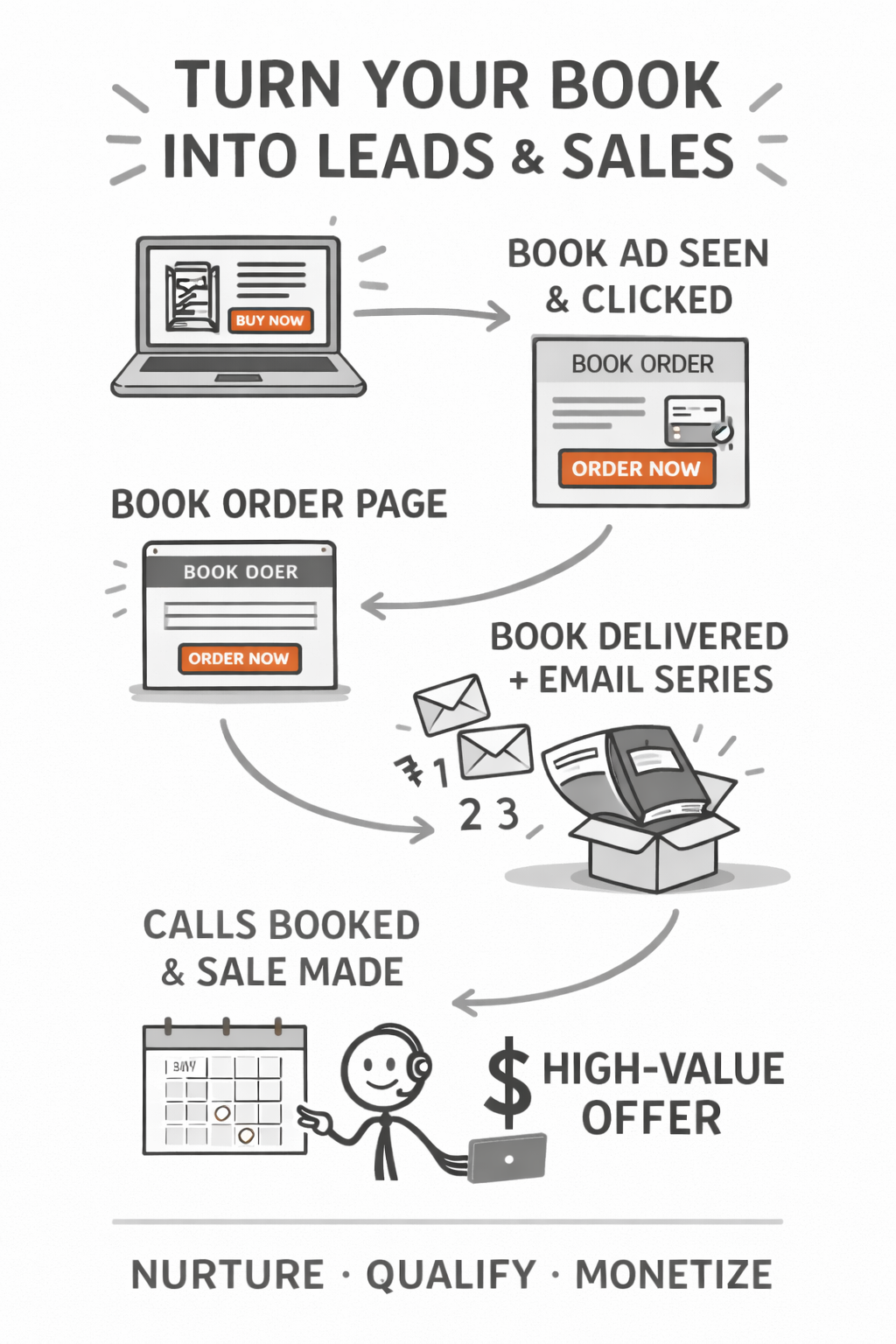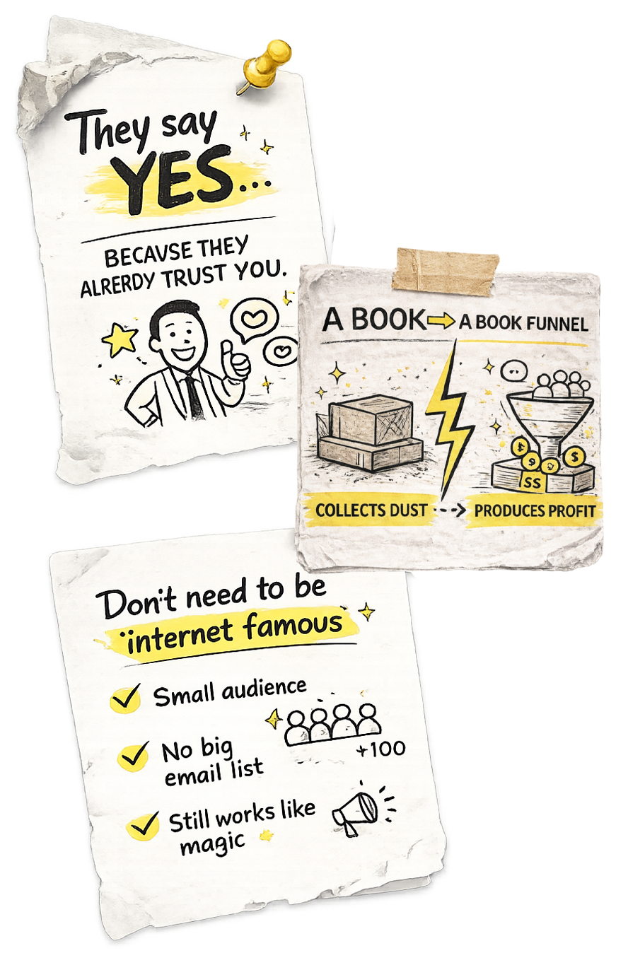 You know the book should be generating leads and clients — you just have no idea what the system looks like or how to build it.